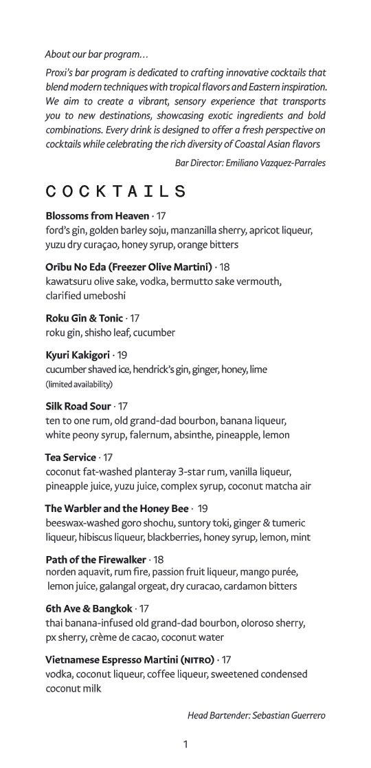 Whether you’re in the mood for savory small plates or something a bit heartier, Proxi’s menu has something to satisfy every craving. The diverse range of flavors, from rich and savory to light and refreshing, is designed to keep you coming back for more. And with a carefully curated drink selection to complement each dish, your meal is bound to be a memorable experience.